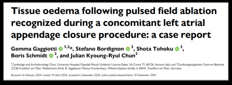 2024年9月发表在欧洲心脏杂志上的一篇病例报告显示左心耳封堵术中发现脉冲电场消融后LAA-PV嵴部的水肿,但并不影响手术的成功。