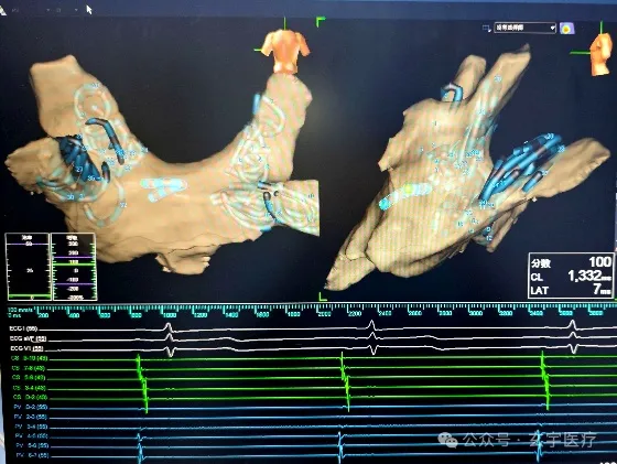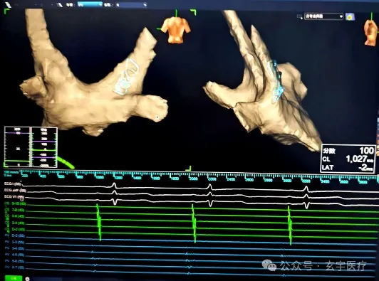 手术在全麻状态下开展,常规血管穿刺后,房间隔穿刺鞘经下腔静脉到右房,穿刺房间隔(偏前、偏下)到达左房,建立消融通道。使用玄宇医疗RhythPulse®的15mm脉冲消融导管在三维系统的加持下行左房建模及基质标测。