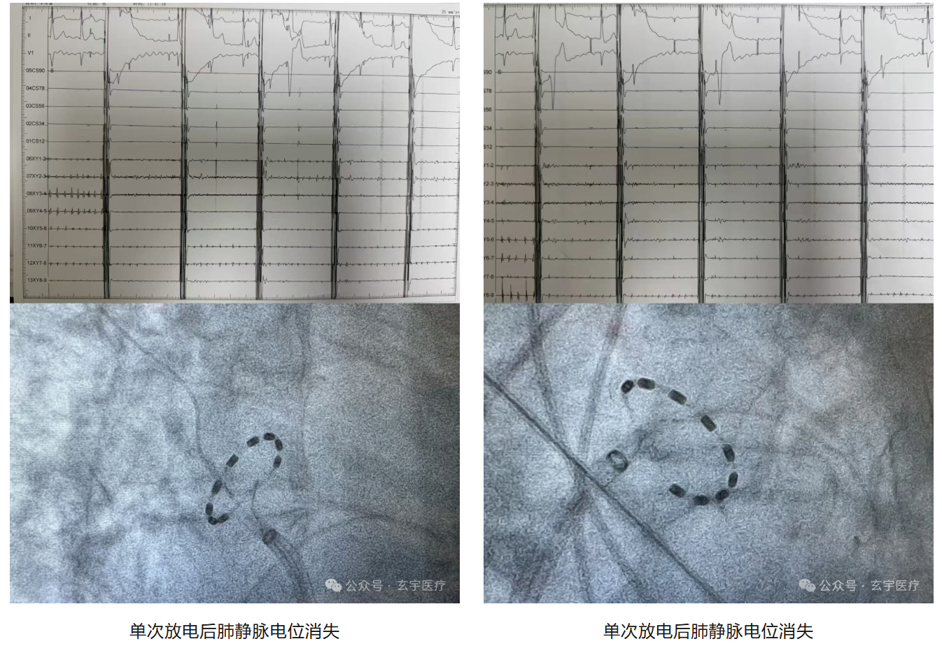在全麻状态下进行PFA手术,患者平卧位,常规消毒,铺巾。2%利多卡因局麻穿刺点,先后两次穿刺右股静脉,置入冠状窦电极,行房间隔穿刺成功后,注入肝素全身肝素化选用玄宇医疗RhythPulse® 25mm蝶形脉冲电场消融导管,整个手术期间仅进行21组(每组放电5次)放电消融仅用时31分钟,4条肺静脉均实现100%完全隔离,并进行了起搏验证,确认双侧肺静脉实现双向传导阻滞。手术治疗时间仅31分钟,全程无任何并发症发生,手术圆满结束。
